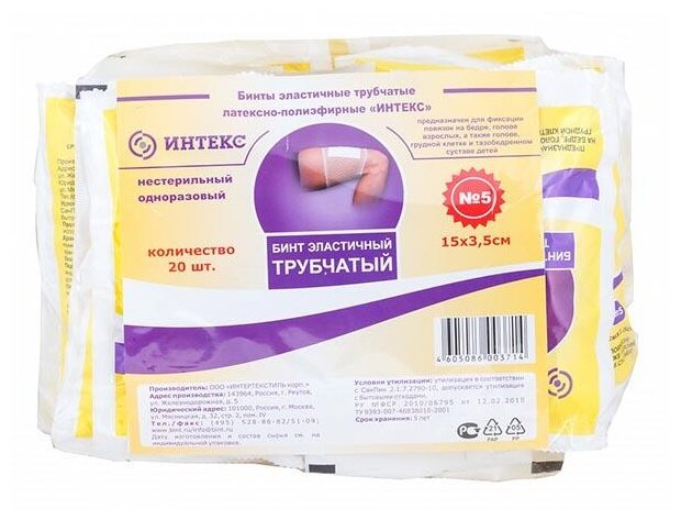 Бинт эластичный трубчатый Интекс (15x3,5 см) №5, 20шт информация: