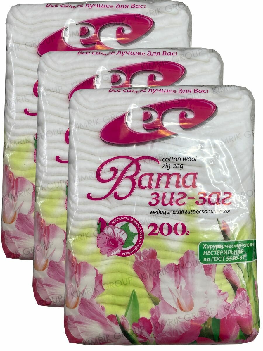 Набор Вата медицинская нестерильная "ЗИГ-ЗАГ", 3 уп х 200 г, Емельянъ Савостинъ