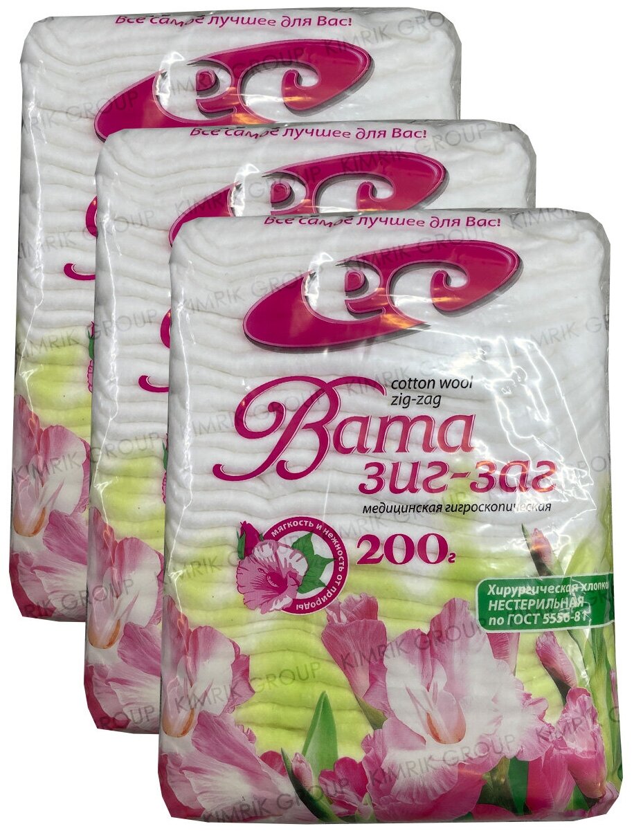 Набор Вата медицинская нестерильная "ЗИГ-ЗАГ", 3 уп х 200 г, Емельянъ Савостинъ информация: