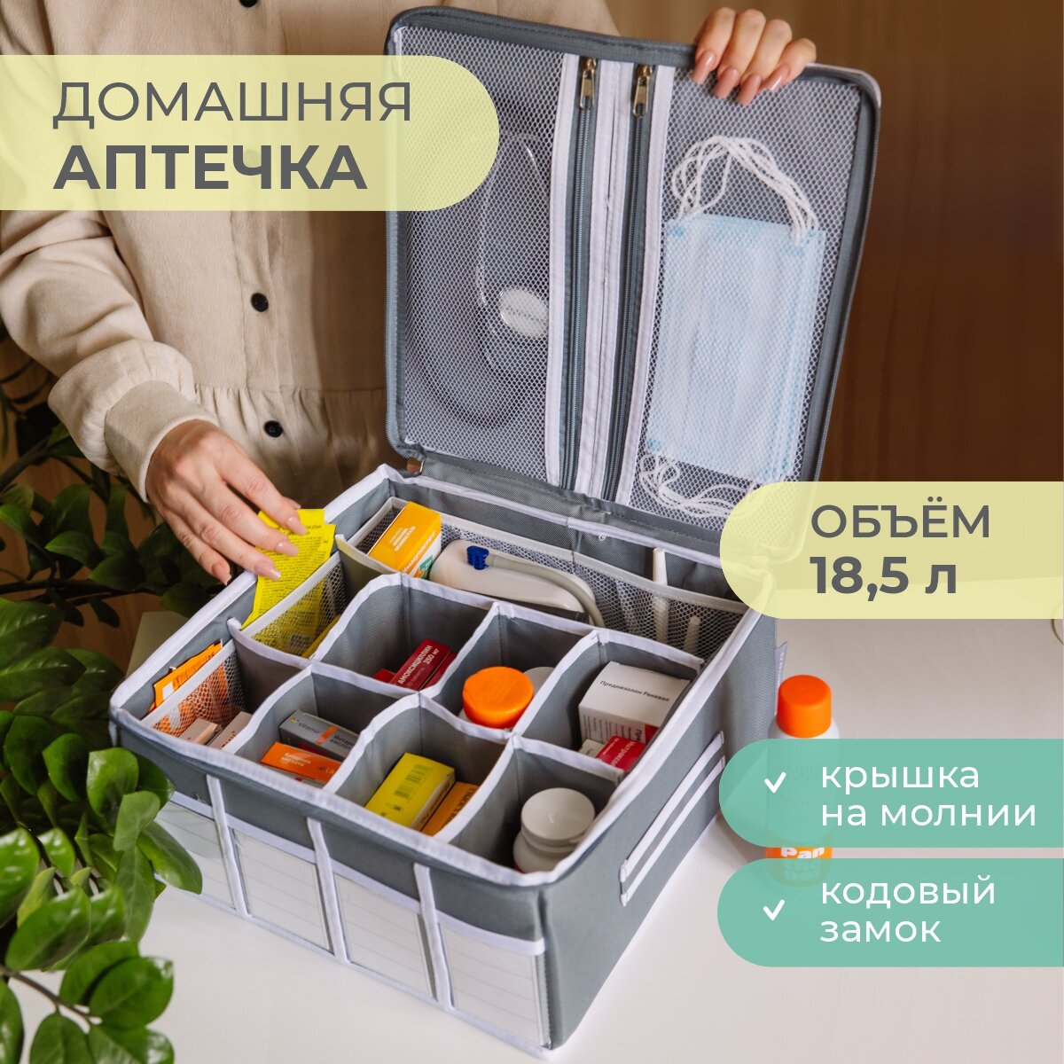 Аптечка домашняя KIDS SAFE 34х34х16 см, 21 ячейка информация:
