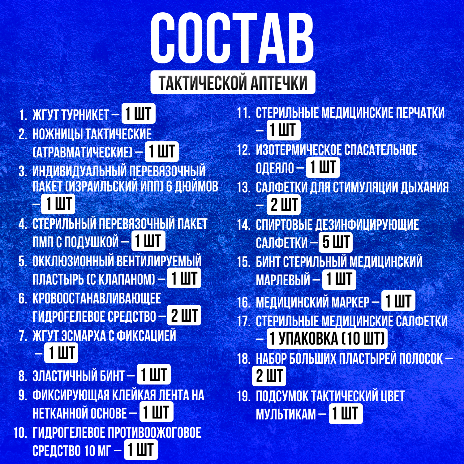 0 отзывов, средняя оценка 0. Чтобы купить «Аптечка тактическая укомплектованная военная мультикам» по лучшей цене мы сканируем авито, алиэкспресс, маркет, озон, савеловский, плеер, горбушку, беру, официальные сайты и находим минимальную. Администрация не несет ответсвенность актуальность цен на Аптечка тактическая укомплектованная военная мультикам, более подробно узнавайте на сайте магазина.