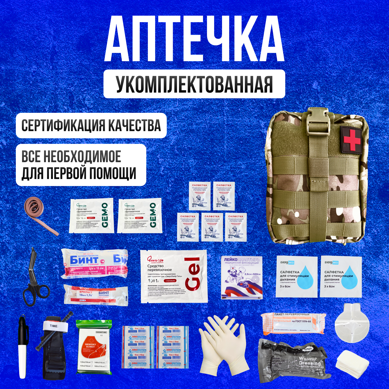 10 цен на Аптечка тактическая укомплектованная военная мультикам
