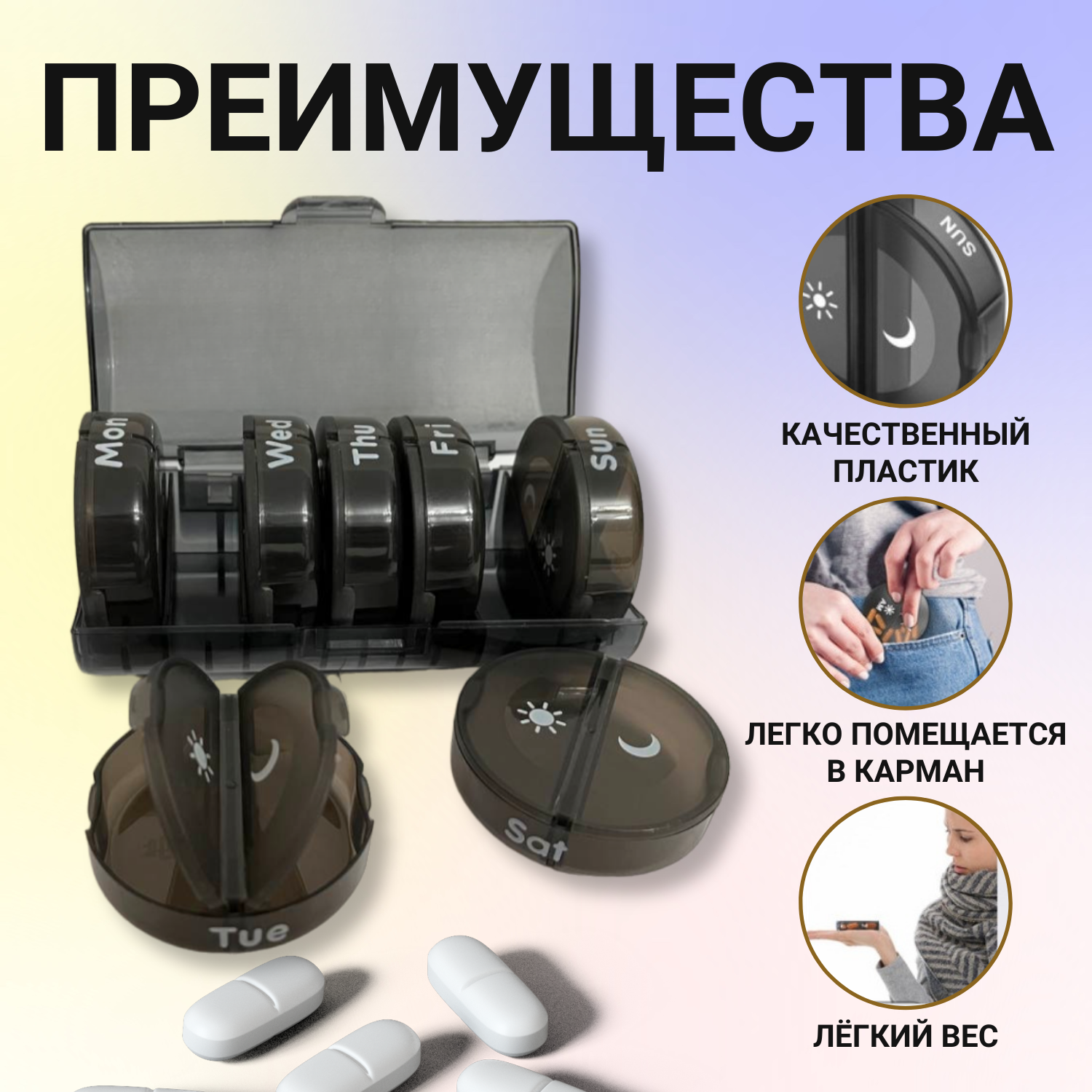 10 цен на Таблетница органайзер на неделю утро вечер / Органайзер для таблеток на 7 дней 2 приёма, цвет чёрный, LugHome