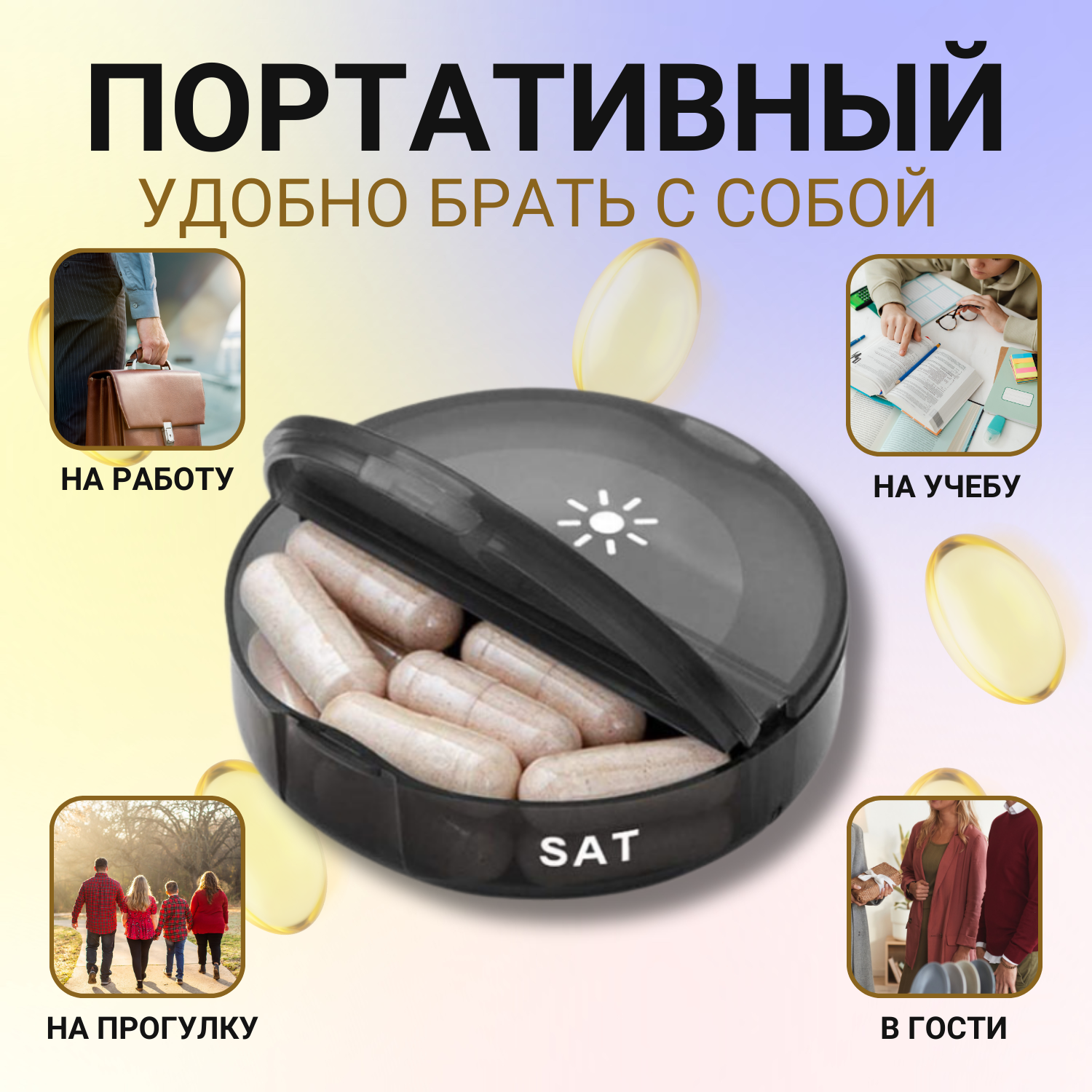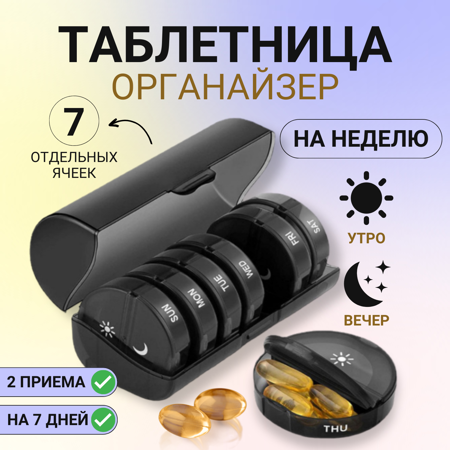 Отзывы на Таблетница органайзер на неделю утро вечер / Органайзер для таблеток на 7 дней 2 приёма, цвет чёрный, LugHome