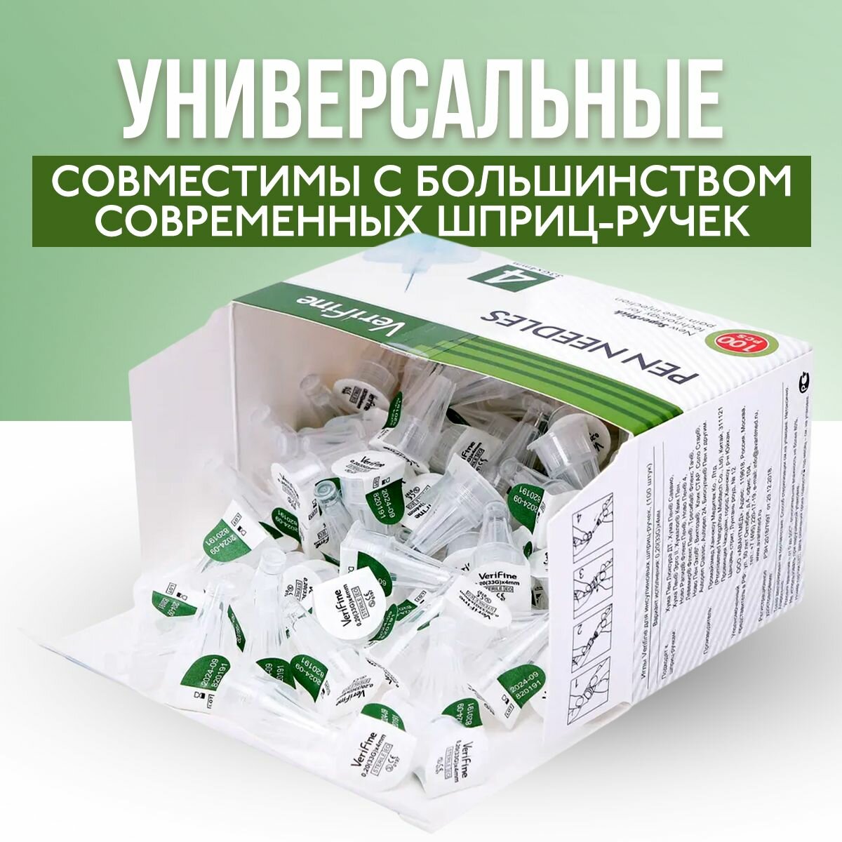 Иглы для инсулиновых шприц-ручек Verifine (Верифайн), 4 мм, 33G , 100 штук информация: