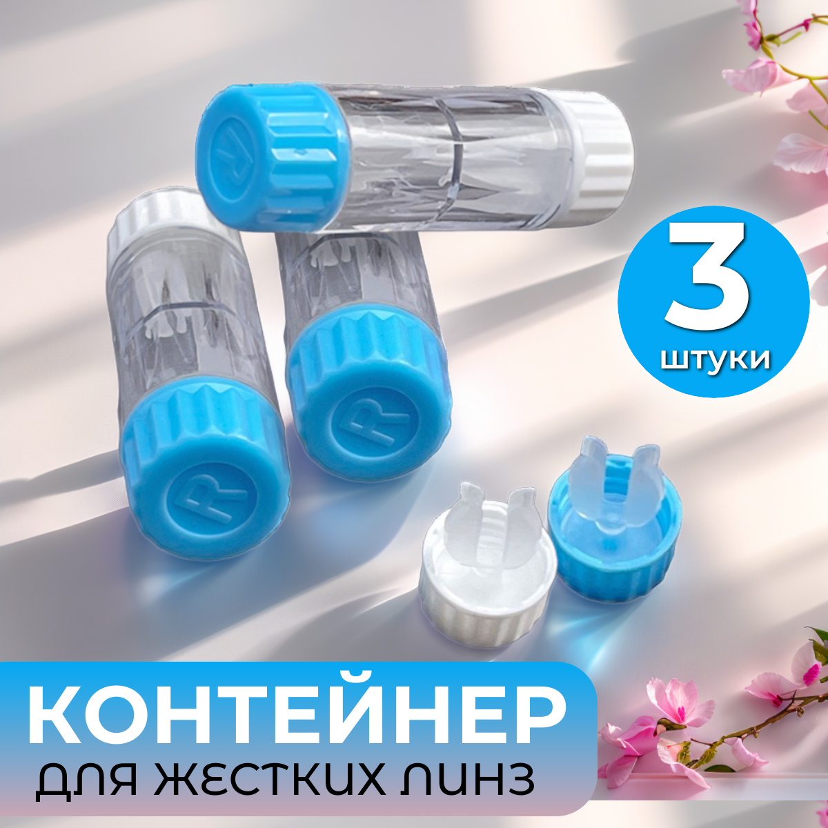 Контейнер для жестких линз 3 шт. синий информация: