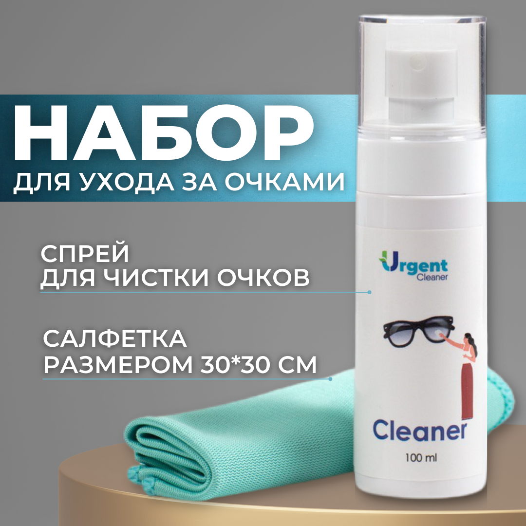 Отзывы на Набор уходовый Urgent для очков,экранов,оптики, спрей очищающий 100мл, салфетка из микрофибры 30*30см