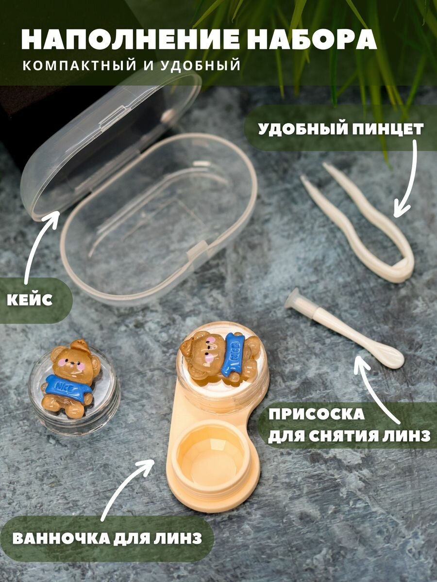 Контейнер для хранения контактных линз, дорожный набор Sweet bear chocolate