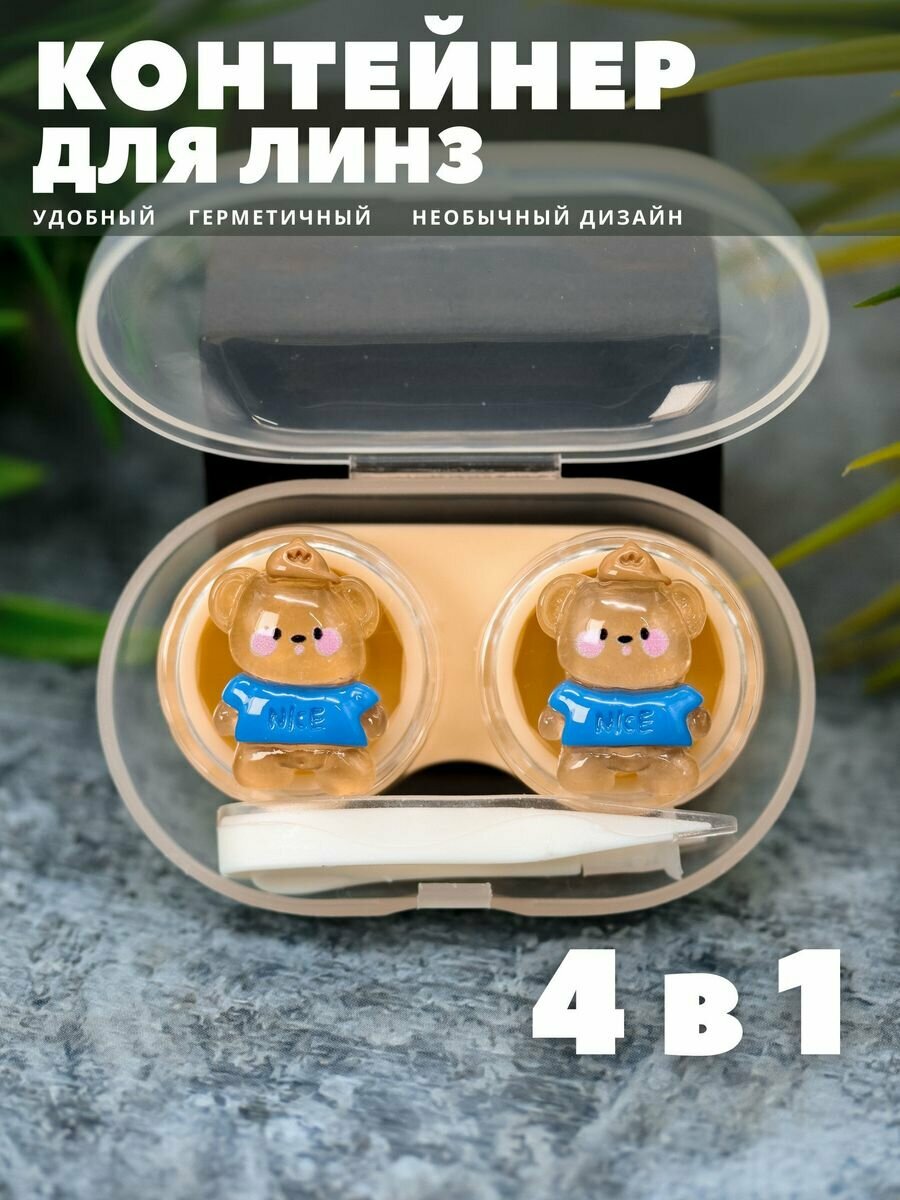 Контейнер для линз контактных, дорожный набор Glass bear brown информация: