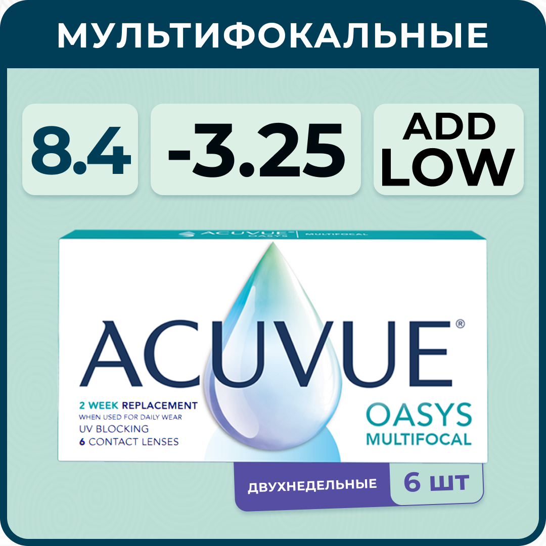10 цен на Мультифокальные линзы ACUVUE Oasys Multifocal 6 линз R 8.4 SPH -3.25 Аддидация LOW (от +0,75 D до +1,25 D), двухнедельные