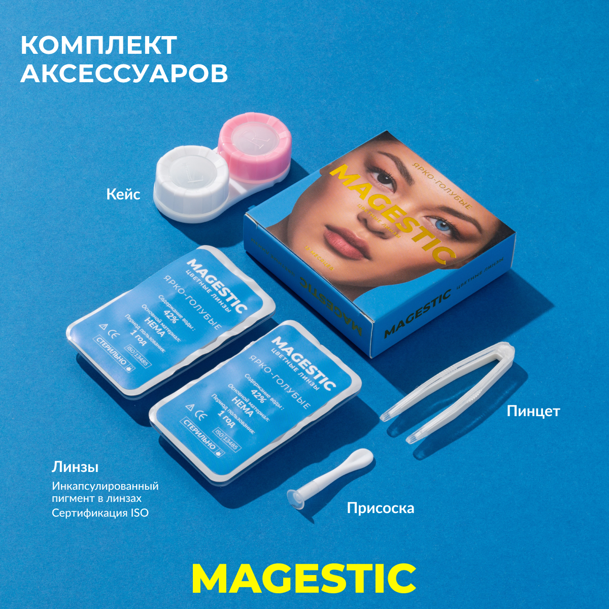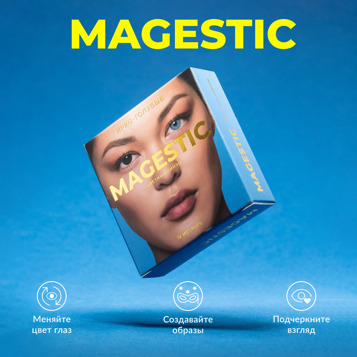 Цветные контактные линзы для глаз ярко-голубые MAGESTIC 1 пара, 12 месяцев, 0.00, кривизна 8,6 мм информация: