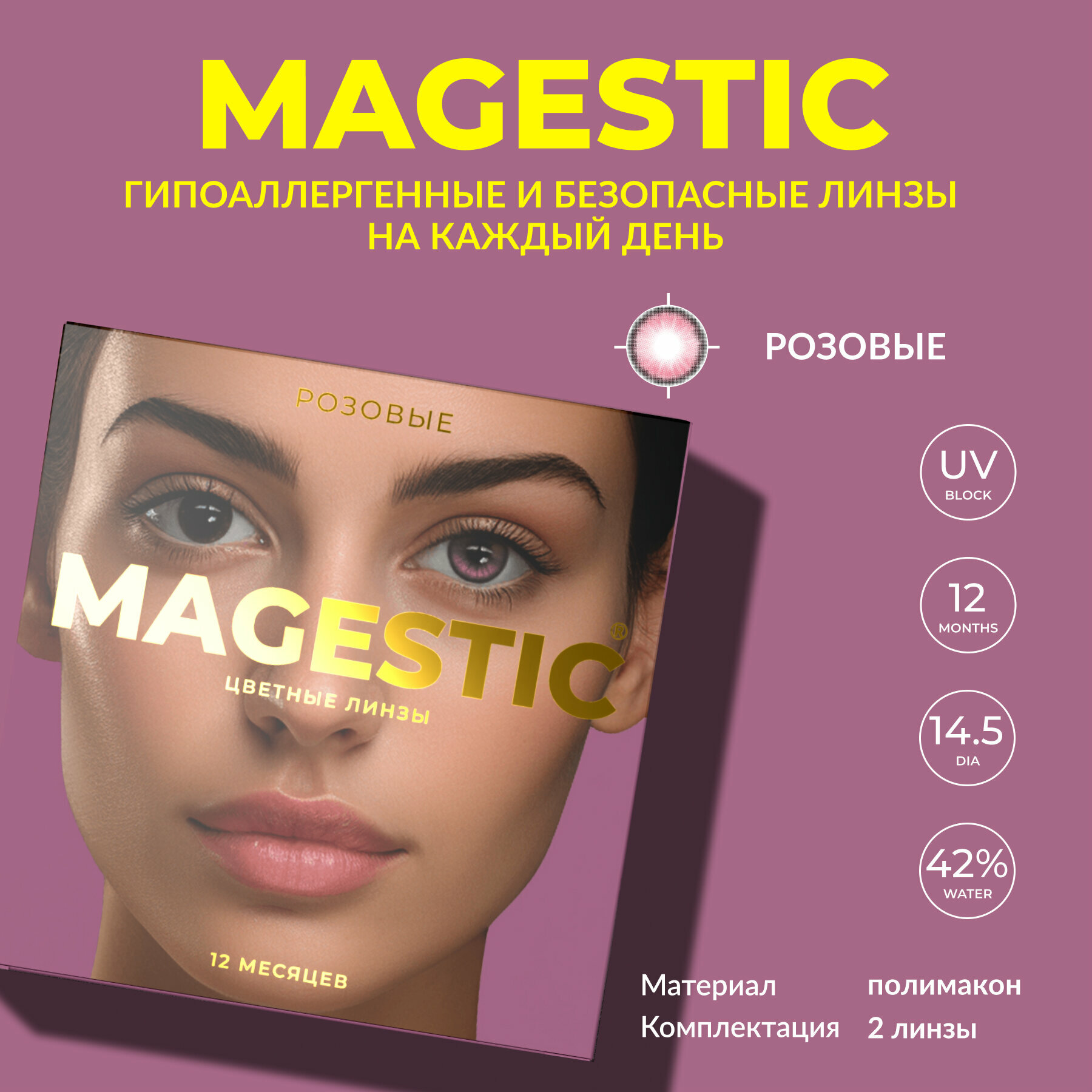 Отзывы на Цветные контактные линзы для глаз розовые MAGESTIC 1 пара, 12 месяцев, 0.00, кривизна 8,6 мм, диаметр 14,5 мм
