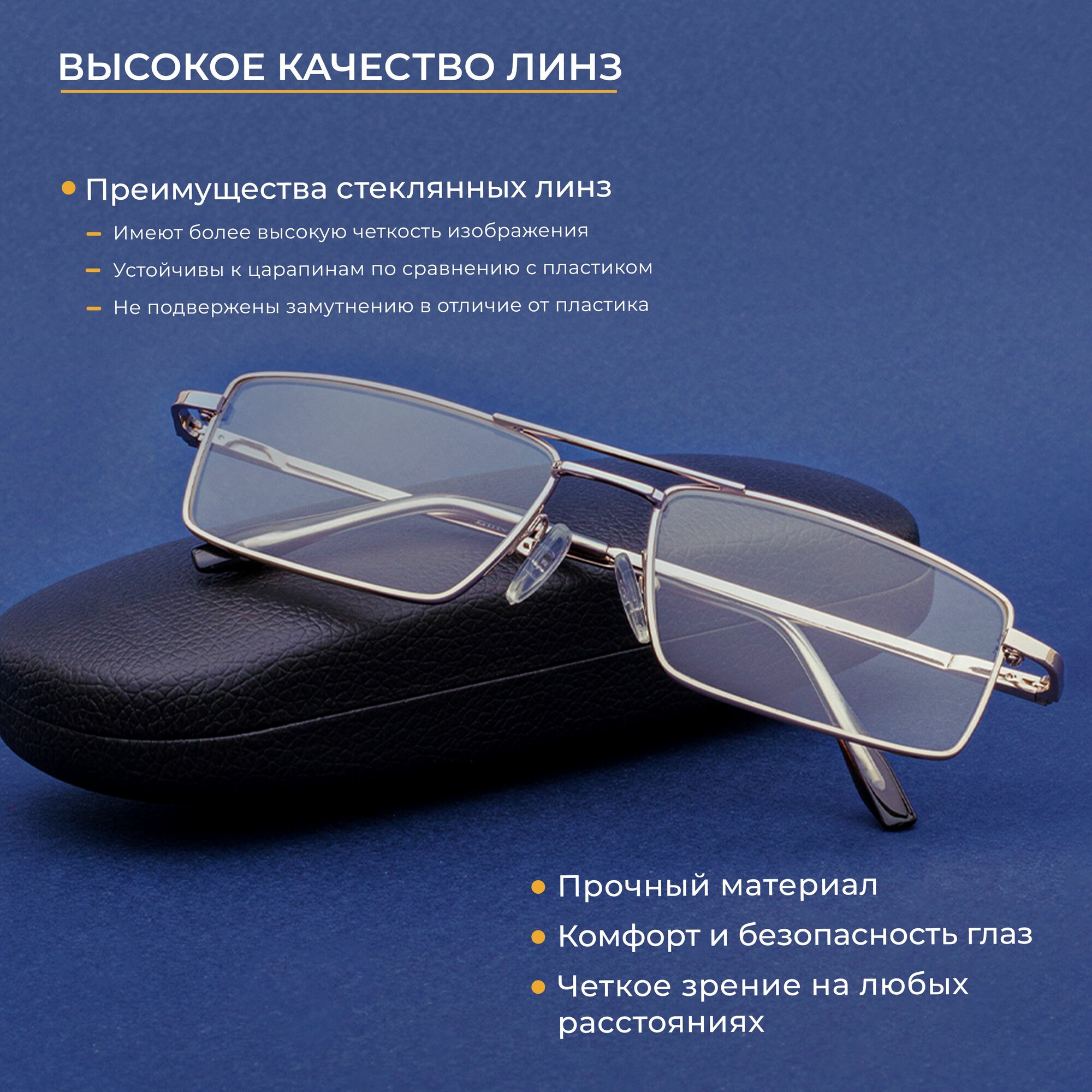 Мужские очки для чтения со стеклянной линзой (+2.50) ELITE 5098, линза стекло, цвет серебро, РЦ62-64, с футляром салфеткой и шнурком 1 095 ₽