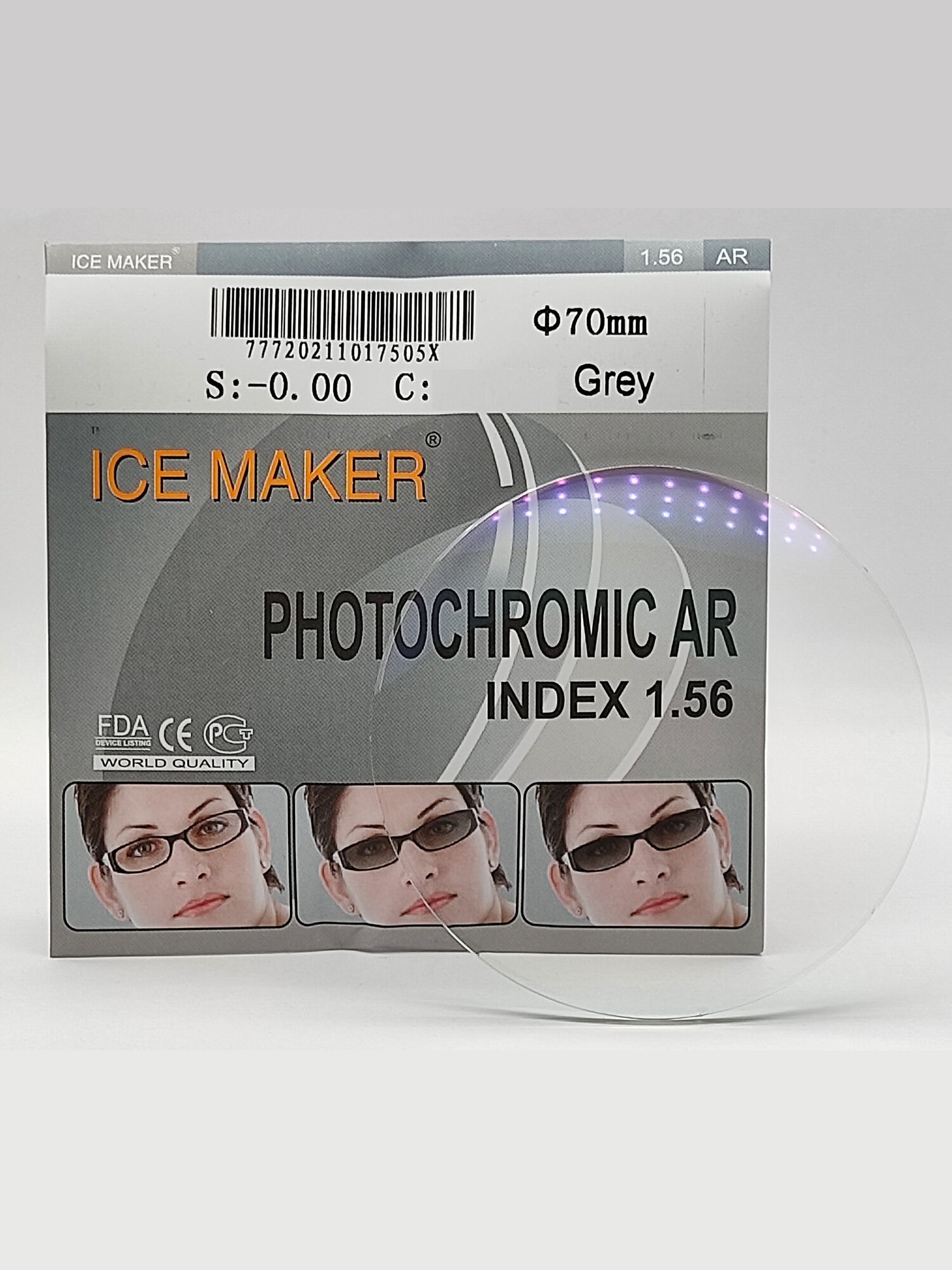 Линза для очков стигматическая 1шт ICE MAKER 0.00 нулевка (без диоптрий), d 70, index 1.56, серый
