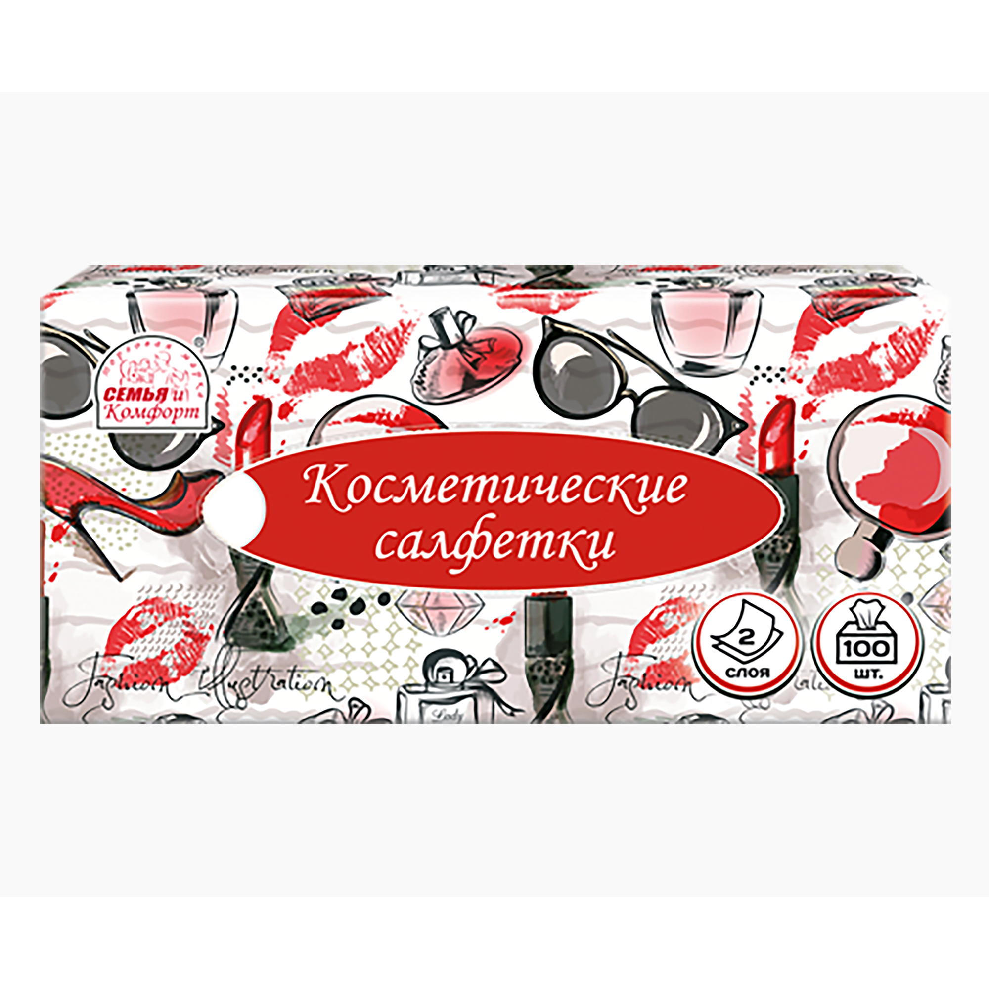 Косметические салфетки Семья и Комфорт белые, 2-х слойные в коробке 100 шт. информация: