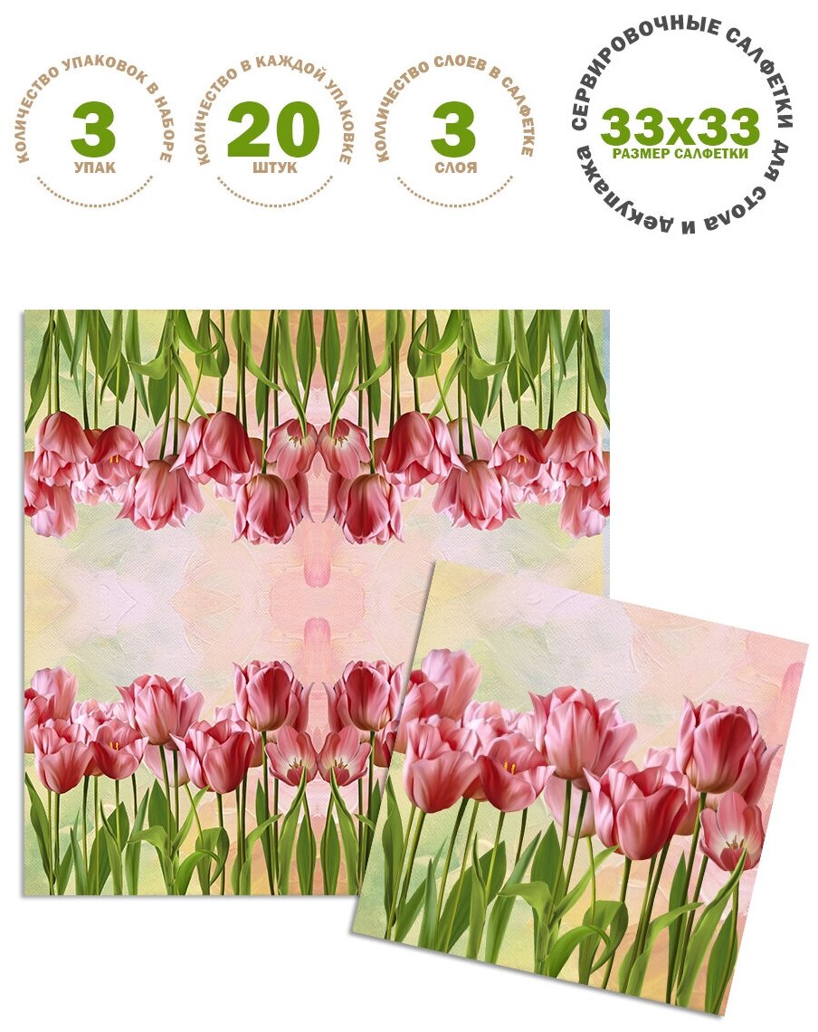 Набор салфеток "Полянка" для стола и декупажа, 33*33 см, 3 слоя, 20 шт/3 уп информация: