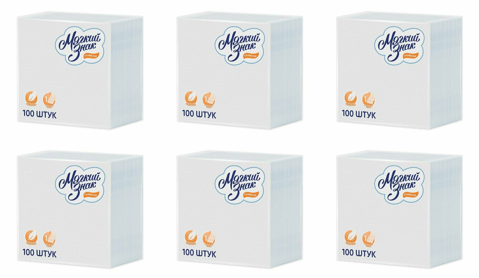 Салфетки Мягкий знак бумажные, белые, 100 листов в уп, 6 уп. информация: