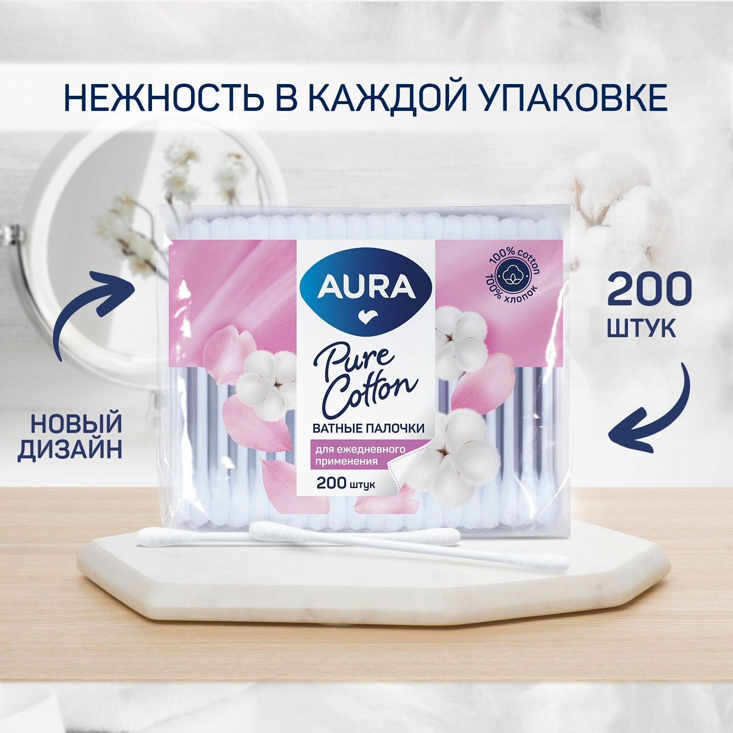Ватные палочки 800 шт (200 шт х 4), AURA BEAUTY информация: