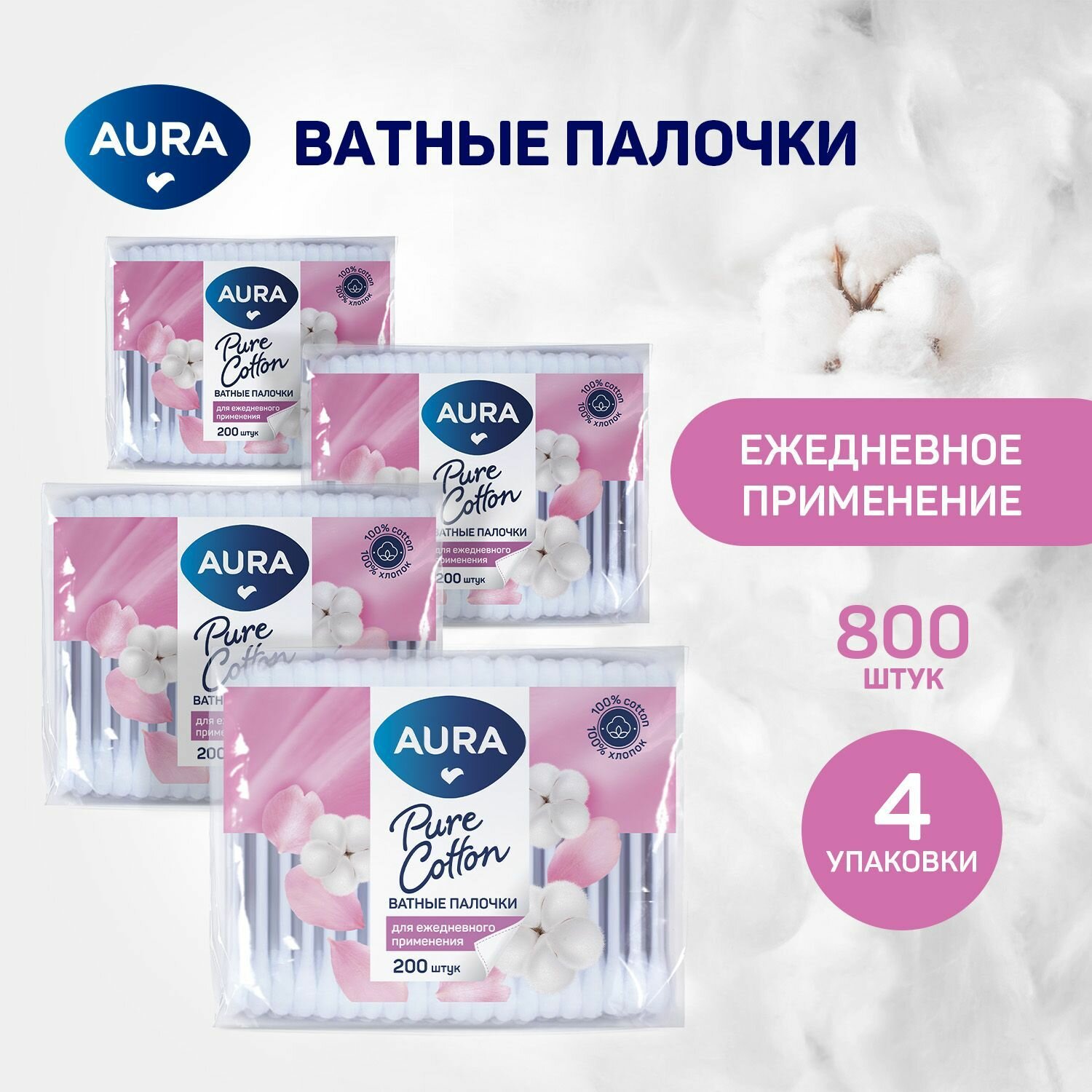 10 цен на Ватные палочки 800 шт (200 шт х 4), AURA BEAUTY