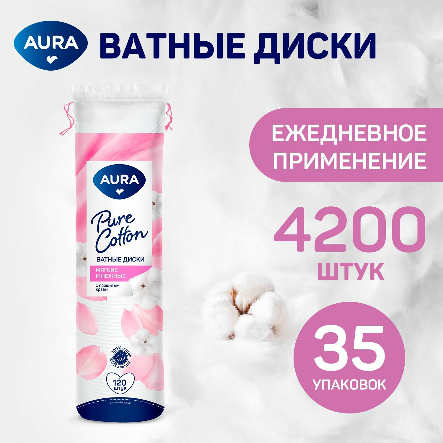 Ватные диски 4200 шт (120 шт х 35), AURA Pure Cotton информация: