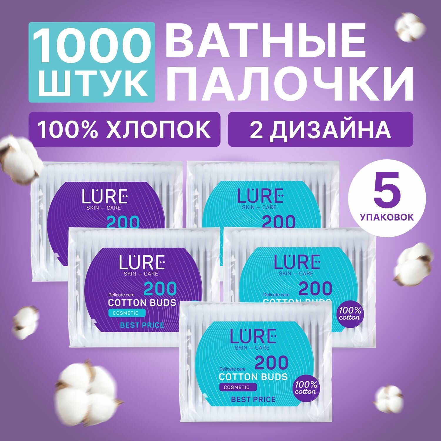 Ватные палочки 1000 шт (200 шт х 5), LURE информация: