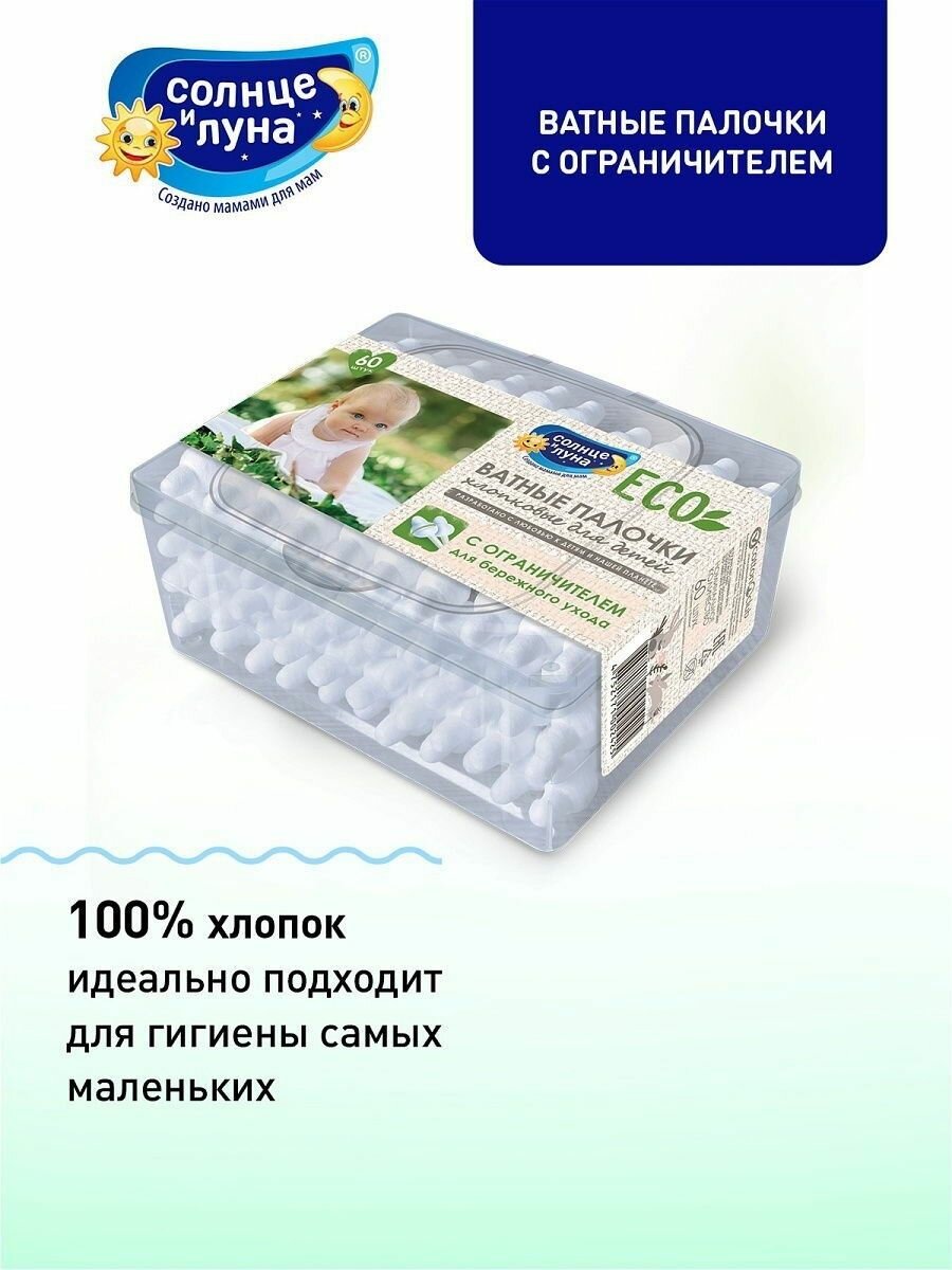 Ватные палочки Солнце и Луна Eco для детей с ограничителем