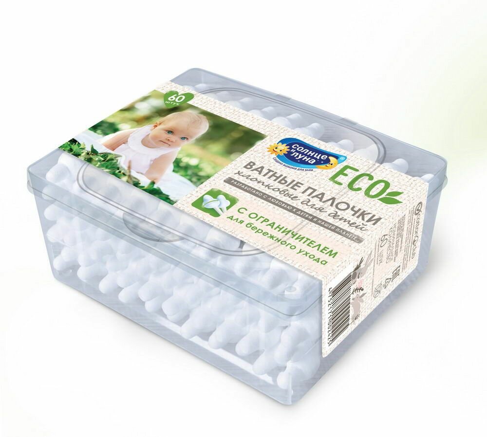 Ватные палочки Солнце и Луна ECO с ограничителем, 60 штук (4607068628168) информация: