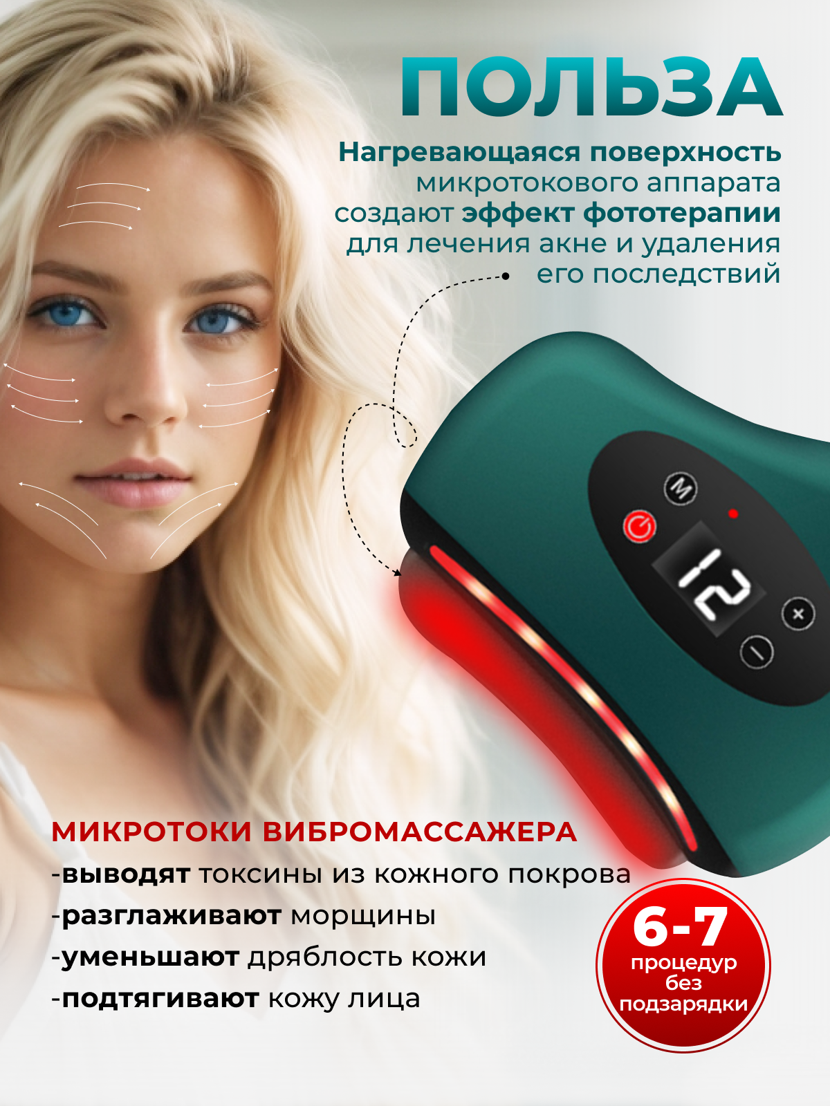 Отзывы на Массажер для лица микротоковый электрический с функцией вибрации, фототерапии, массаж гуаша