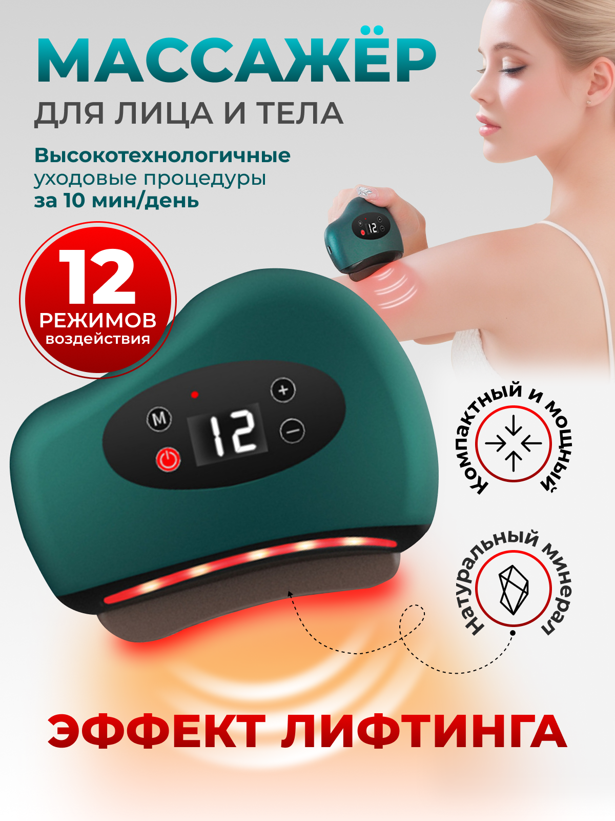 10 цен на Массажер для лица микротоковый электрический с функцией вибрации, фототерапии, массаж гуаша