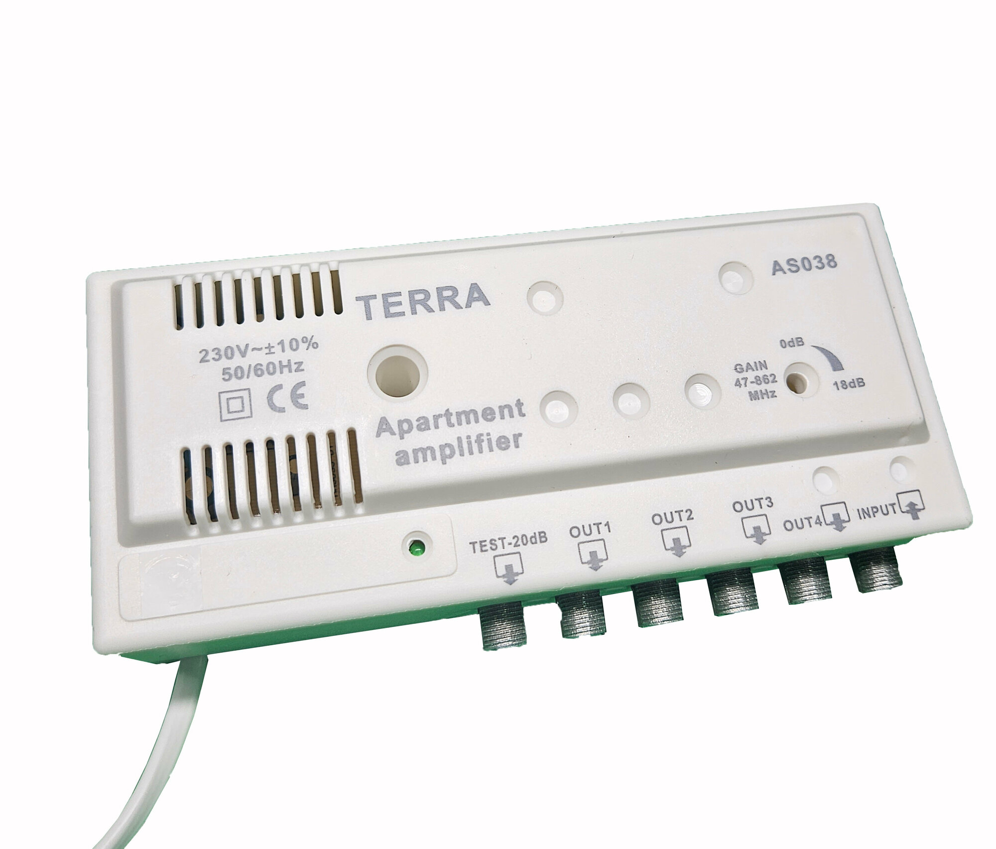 Усилитель квартирный TERRA AS038 (Special Edition) DVB-T2, 18 Дб, 4 выхода (Al-400) информация:
