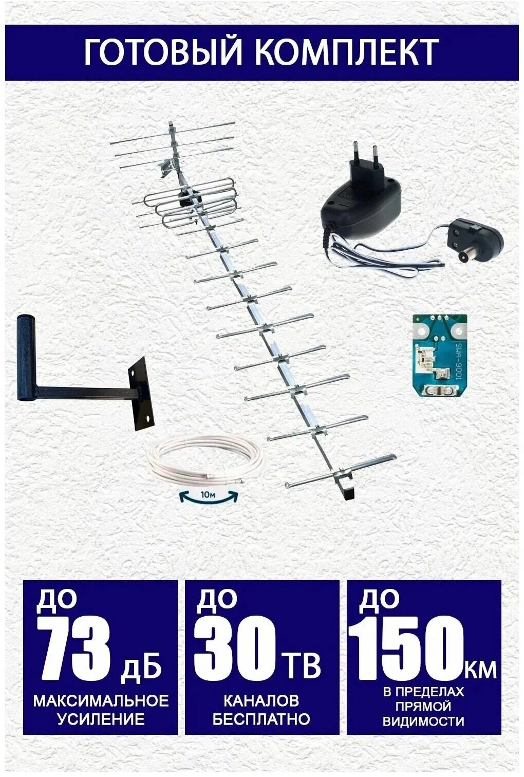 Антенна для цифрового ТВ самая мощная наружная тв антенна МИР-8 (10 дб) с усилителем (60 дб) полный комплект для подключения
