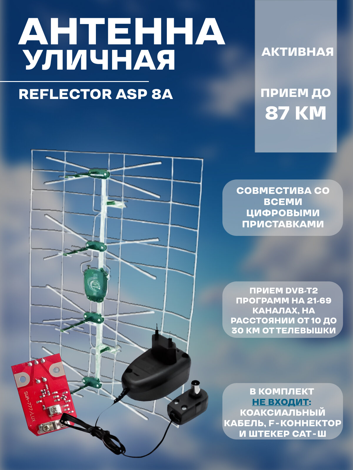 Отзывы на Уличная антенна ASP 8A А3 12В + Блок питания ("Полячка") - активная / Прием до 87 км