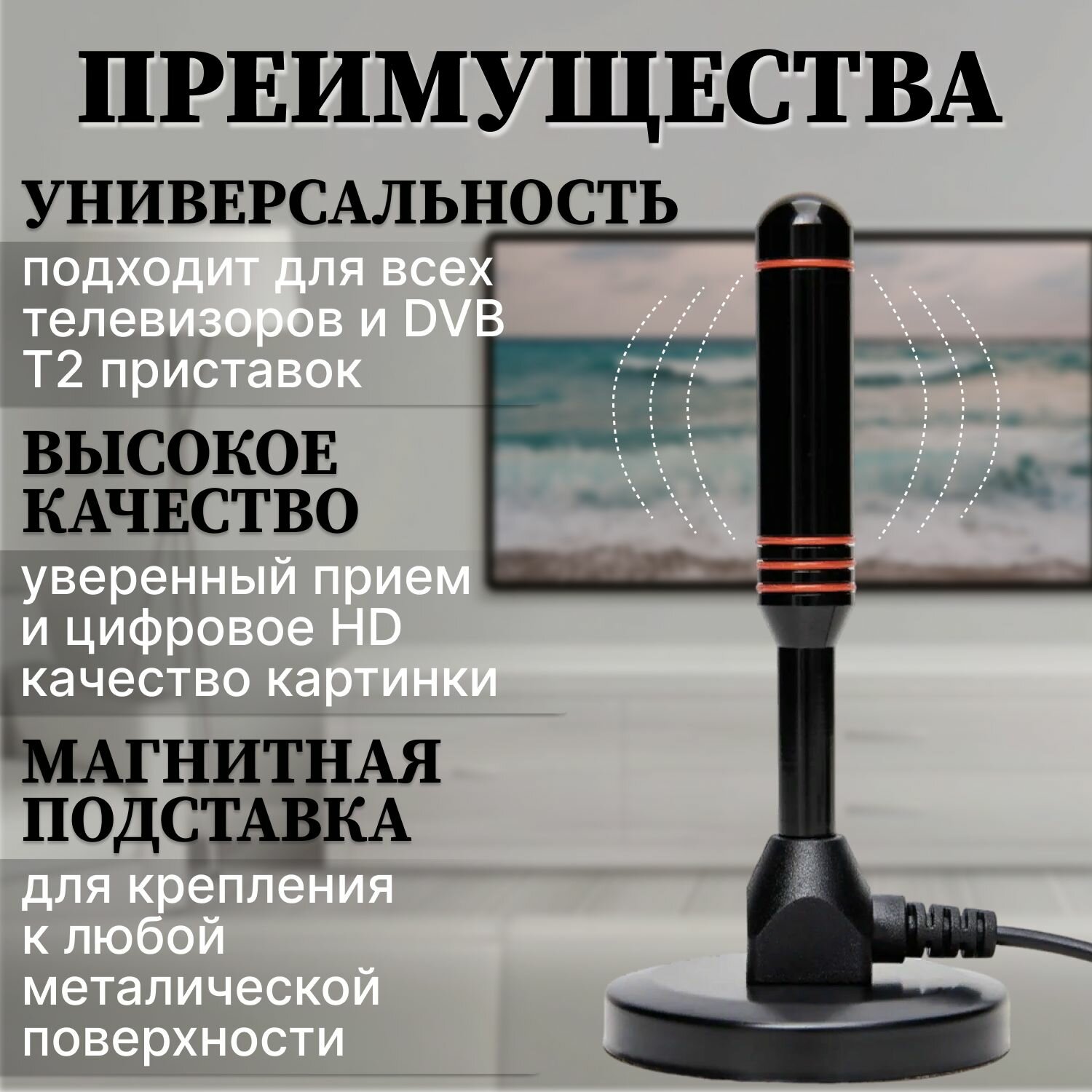Антенна комнатная домашняя для телевизора с усилителем активная для цифрового ТВ с креплением на магните, универсальная информация: