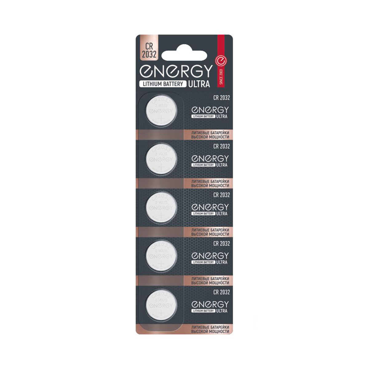 Батарейка Energy Ultra CR2032/5B, типоразмер CR2032, 5 шт информация: