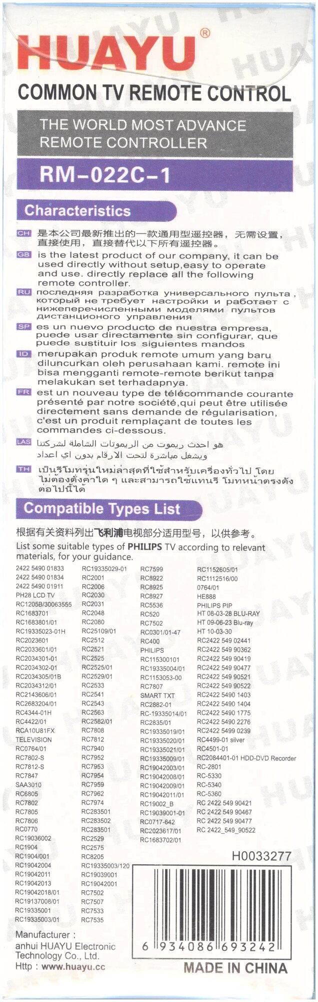 Универсальный пульт для телевизоров PHILIPS / Филипс информация: