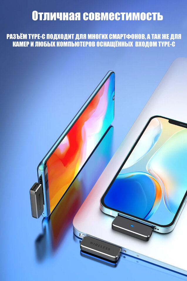 Беспроводной петличный микрофон M3 2 штуки для смартфона, телефона, планшета с разъемом TYPE-C с кейсом зарядным устройством информация: