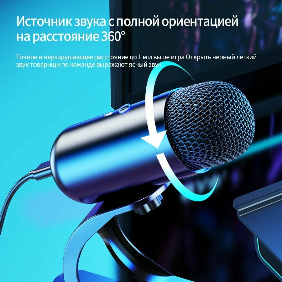 10 цен на Микрофон игровой (для стриминга) Конденсаторный USB-микрофон K6, синий