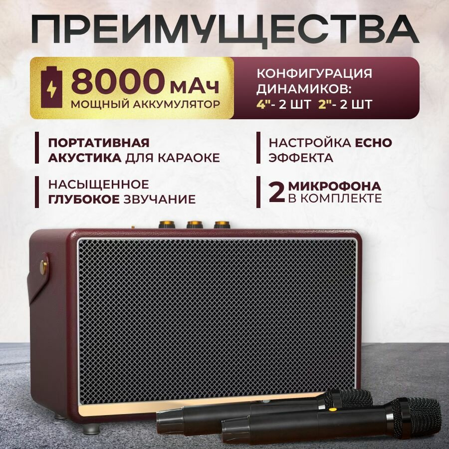 | Подробная комплектация | Акустическая система- 1 шт; Микрофон - 2 шт; Кейс для микрофонов - 1шт; Ремень для переноски - 1 шт; Винты для крепления ремня- 1 шт; Инструкция на русском языке - 1 шт; Блок питания - 1 шт |