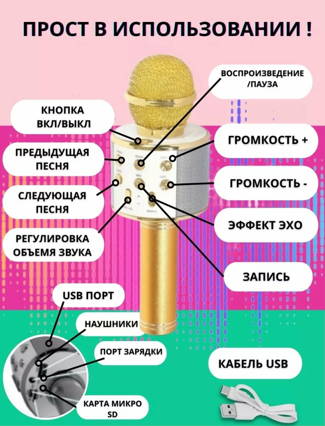 10 цен на Караоке микрофон беспроводной/для вокала.(золотой)