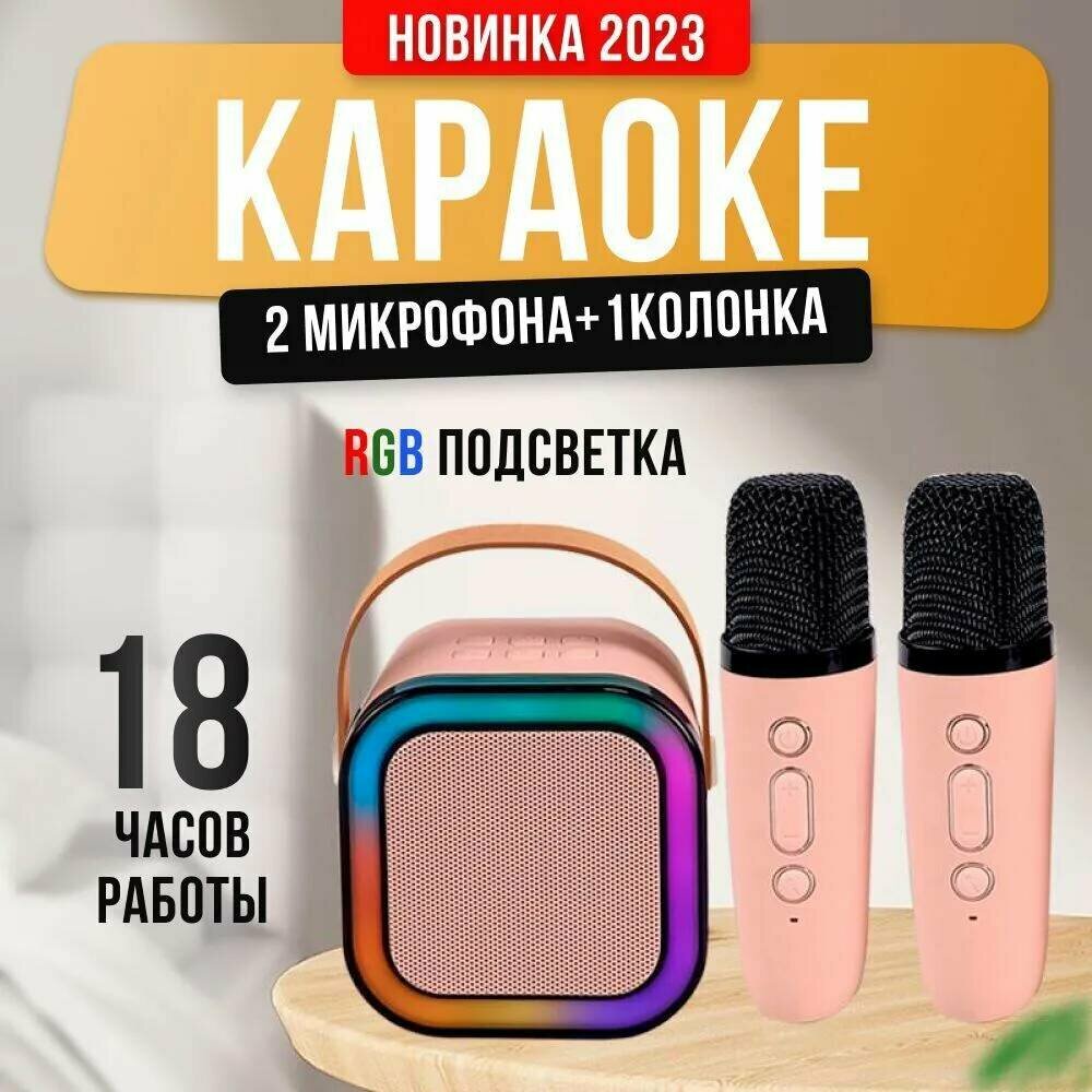 Беспроводной микрофон для караоке с портативной колонкой и RGB подсветкой , персиково-розовая