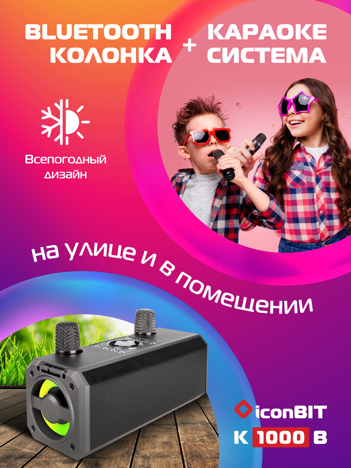 Отзывы на Переносная караоке-система IconBit K1000B с двумя микрофонами и аккумулятором, 20 Вт