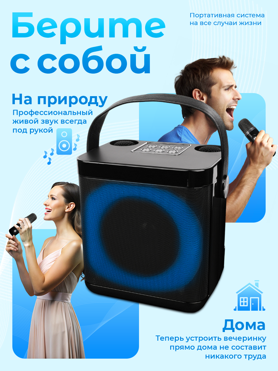 Отзывы на Переносная караоке-система IconBit K702B с двумя микрофонами и аккумулятором, 10 Вт