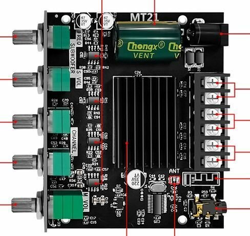 Отзывы на 2.1 Стерео усилитель, вход: 3,5 jack AUX и Bluetooth 5.1, Выход: колонки 50 Вт * 2 шт + 100w бас