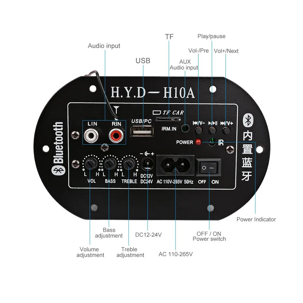 Усилитель звука, усилитель звука для колонок, Пиковая мощность 500Вт+500Вт