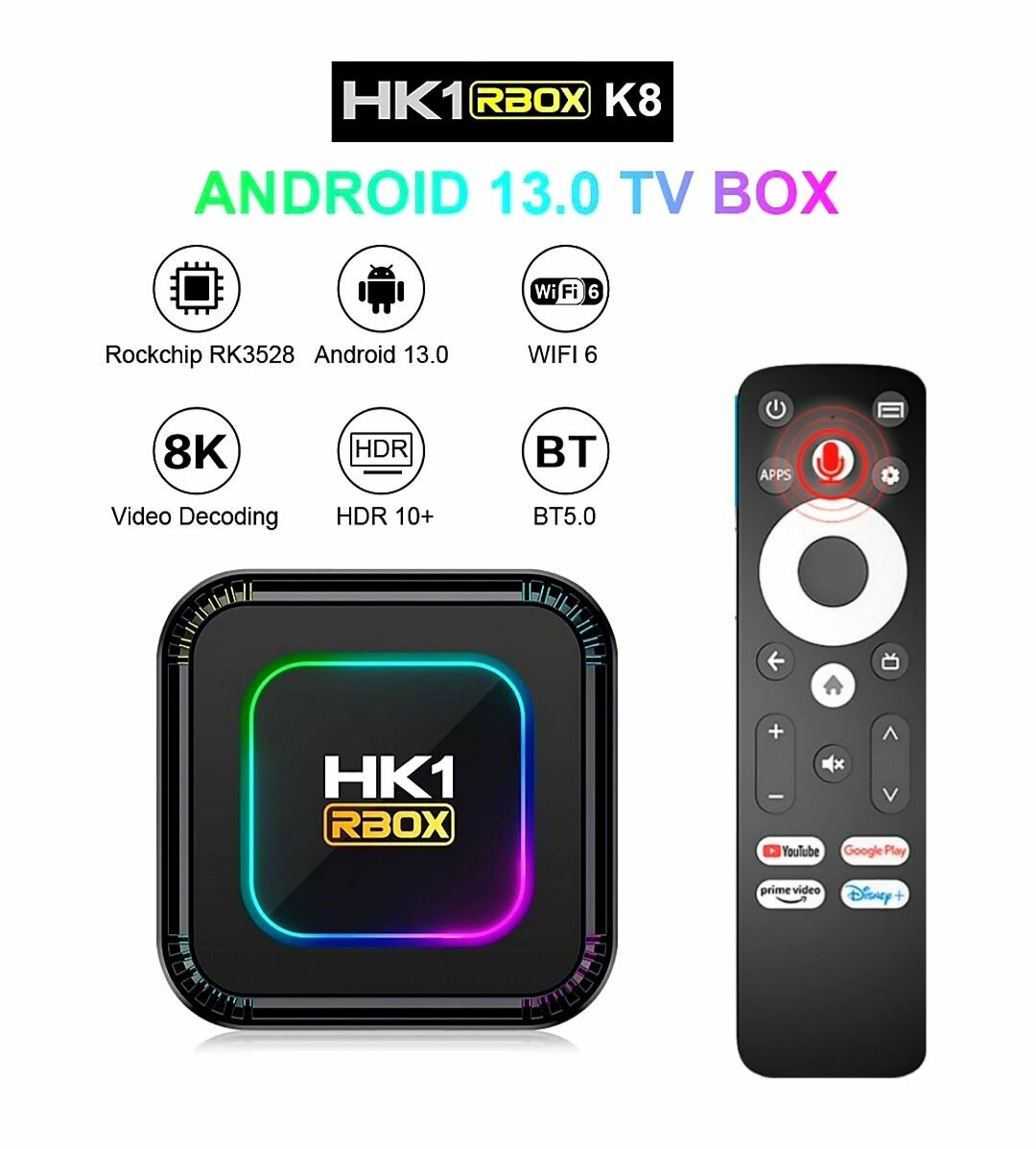 Смарт ТВ бокс HK1 RBOX K8 4/32Gb RK3528 смарт ТВ приставка для телевизора на Android 13 голосовой пульт. информация: