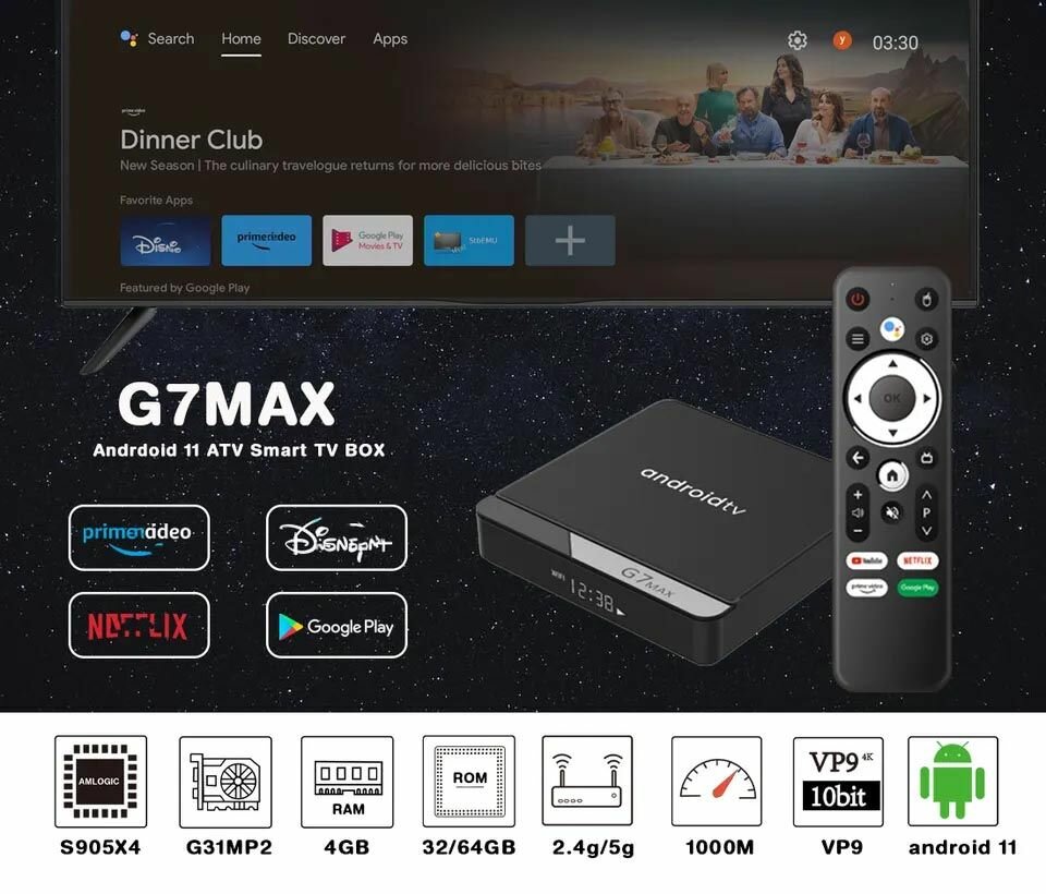 G7 MAX Смарт ТВ приставка 4/32Gb 100M андроид, tv box для smart телевизора, медиаплеер, тв бокс android информация: