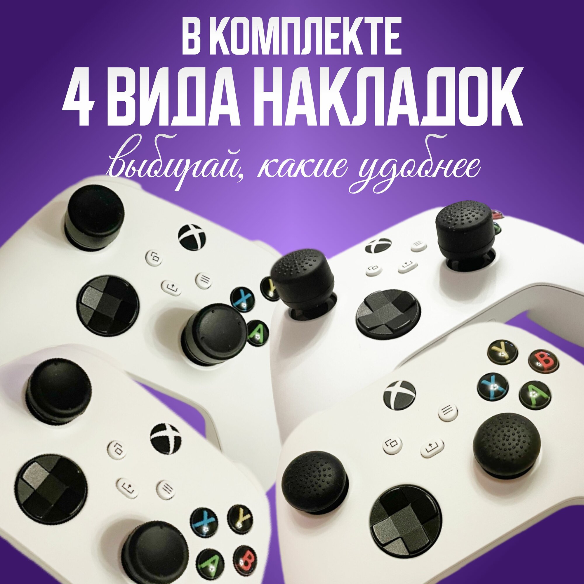 Отзывы на Накладки на стики геймпада универсальные для PS4, PS5, XBOX 360, One, series X/S, Switch Pro, Steam Deck / 8 шт, чёрные.