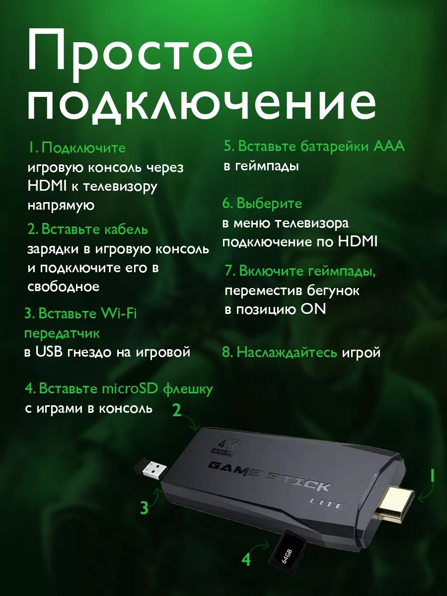 Игровая консоль приставка для телевизора Game Stick Lite/ ТВ/ TV приставка, 20 000 игр