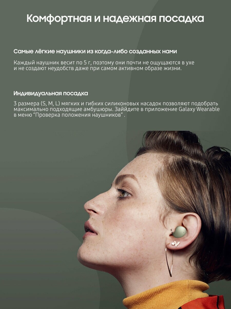 Беспроводные наушники Samsung Galaxy Buds2 RU, оливковый
