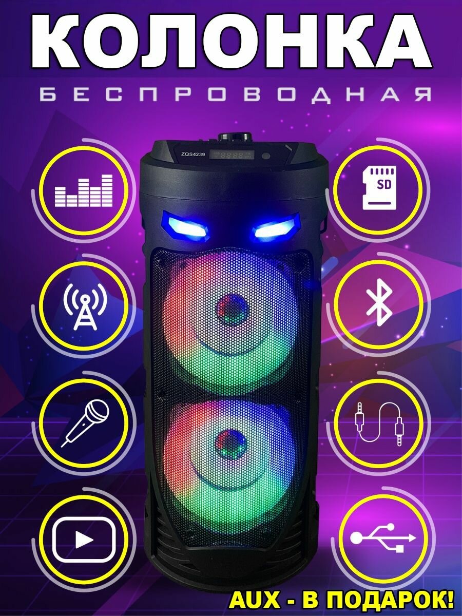 Портативная колонка с Bluetooth ZQS-4239, с пультом ДУ, и микрофоном информация: